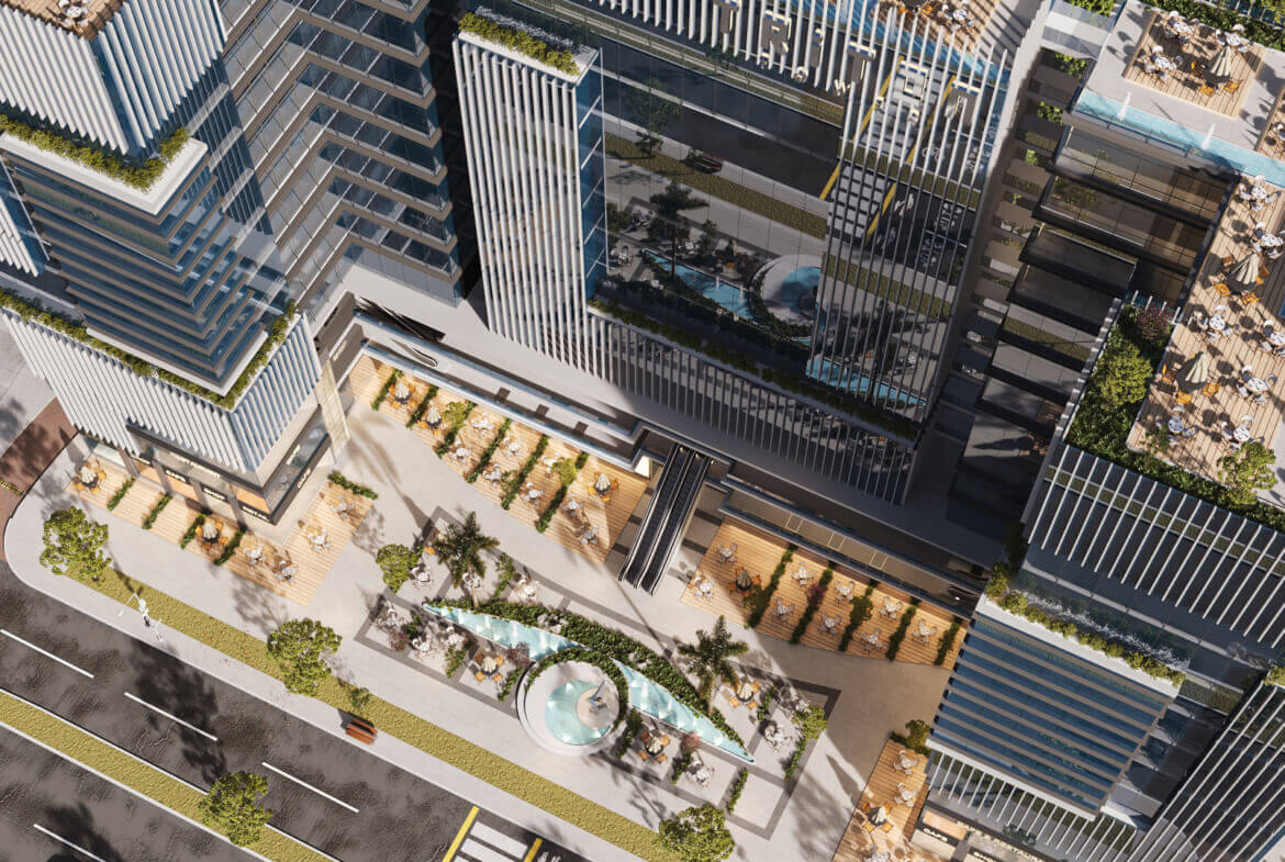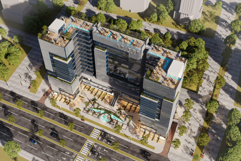 يتكون المبني من ( دور أرضي بالإضافة إلى ثلاثة عشر طابق متكرر، حيث تم تخصيص ثلاثة أدوار تحت الأرض كمنطقة جراجات كبيرة، ومن الدور الأرضي إلى الدور الثالث الوحدات تجارية، من الطابق الرابع وحتى الطابق الخامس تم تخصيصه للنشاط الطبي.